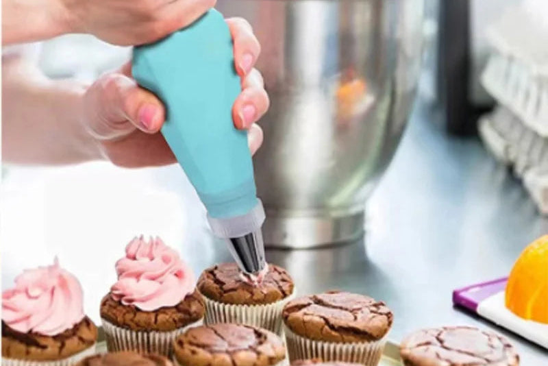 Maak taartdecoratie eenvoudig en professioneel met deze silicone piping bags en RVS spuitmondjes set. Deze complete cake DIY decorating kit is ideaal voor het versieren van taarten, cupcakes, koekjes en desserts met room, botercrème, chocolade of glazuur.